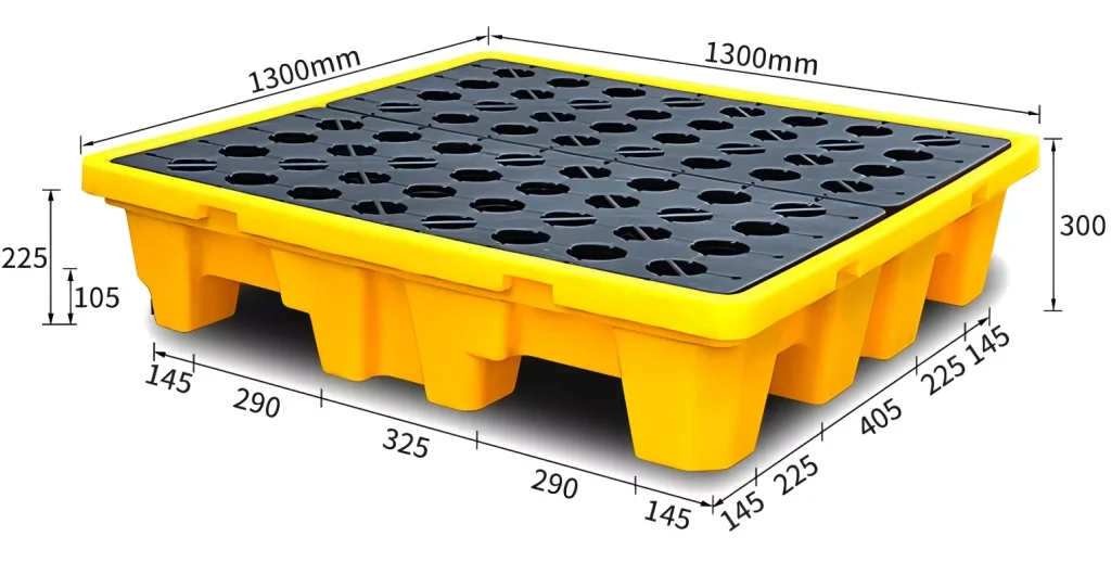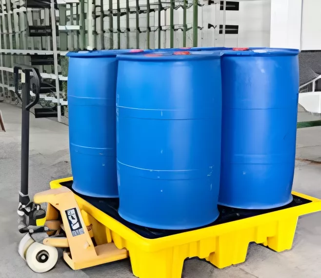 An oil spill pallet is one of the essential pieces of equipment used in the oil and gas industry. Its primary function is to safely store oil drums that are prone to leakages. These pallets are made from high-quality virgin plastic, which is resistant to oil, chemicals, and other corrosive substances. Even in the event of a leakage, the pallet is easy to clean and maintain, ensuring a safe and tidy work environment. The most common model is the four-drum oil spill pallet, designed for both convenience and safety. It is easy to stack, simple to transport, and built to handle heavy loads effectively. Manufactured using non-corrosive polyethylene, the containment pallet offers reliable protection against oil spills. The standard size of the pallet is 130 cm x 130 cm, making it suitable for most industrial applications. Overall, the spill pallet is the safest and most efficient way to store and move fluid containers while preventing environmental contamination.